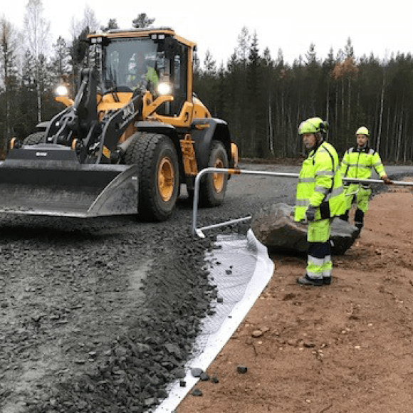 TriAx geogrids enabled unpaved access roads and working platforms for a Swedish wind farm to be built over weak silty moraine deposits with a CBR of 1.5%, accelerating construction, reducing costs and delivering carbon savings for the project.