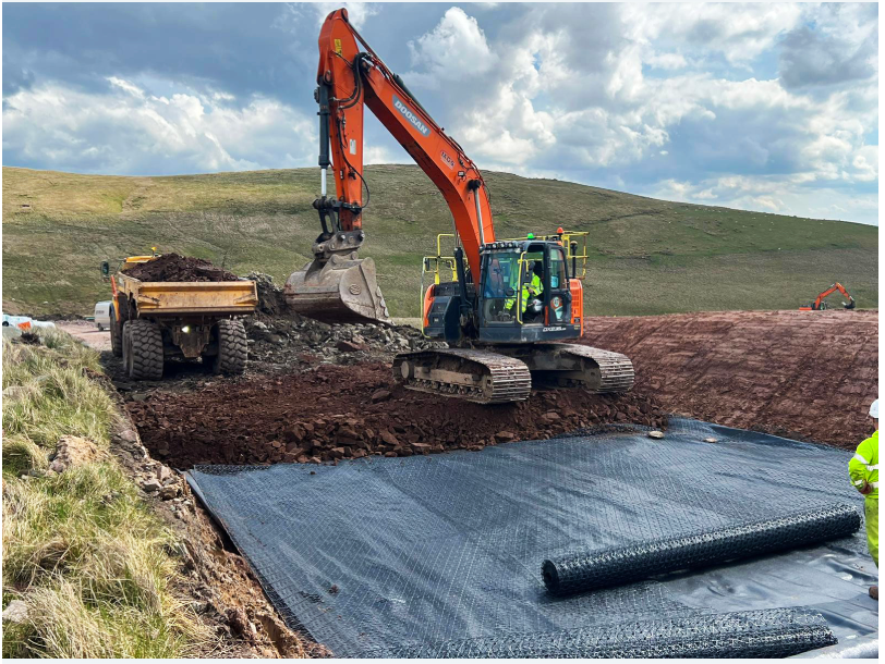By increasing the bearing capacity of the existing ground, geogrids minimise the need to remove poor soils and bring in replacement materials. This can limit the need for excavation, transportation and disposal activities on the wind farm construction site. It also reduced the amount of machinery required on the site, preventing tonnes of wasted aggregates that would otherwise be sent to landfill. Maintaining more of the existing soil structure can also help to improve its long term stability while reducing settlement risks.
