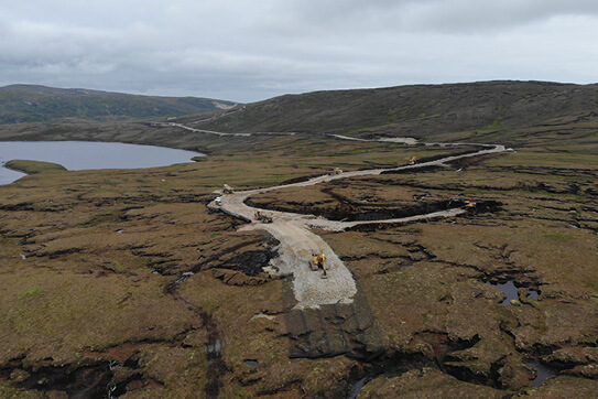 Figure 1- Tensar stabilised floating road construction minimises disruption to environmentally sensitive peat bog (Source SSE Renewables)