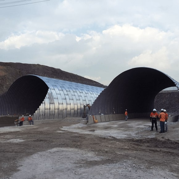 The mining and metal producer needed to build a reinforced earth embankment incorporating two road tunnels, and a road along its crest, to improve access to one of its existing mines. The 13m high embankment, with 45° slopes, had to be easy to build by the clients team with limited geotechnical engineering experience.