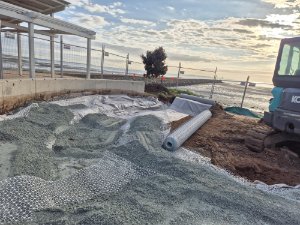Tensar proposed a mechanically stabilised layer incorporating two layers of Tensar InterAx geogrids in the well graded granular subbase material. This dual-layer configuration provided the necessary stabilisation to achieve the required bearing capacity and effectively mitigate differential settlement, improving long-term stability of the beachfront concrete slab structure.