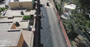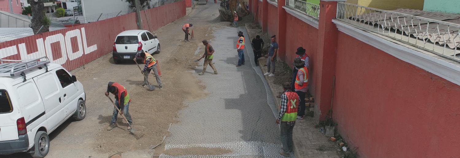 Encontrar una solución efectiva para una zona residencial en crecimiento, con espacio reducido y alto flujo vehicular (camiones de acarreo y conexión con escuelas). El pavimento se encontraba deteriorado debido a CBR en subrasante de 1%, que además por geometría del trazado la zona es propensa a acumulación de agua. Las tuberías del sistema sanitario existente y de agua potable, ubicadas a escaza profundidad (60cm), limitaban la excavación.