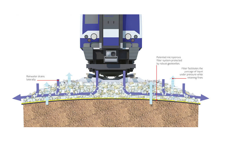 - Prevents subgrade fines and slurry from migrating up into the ballast