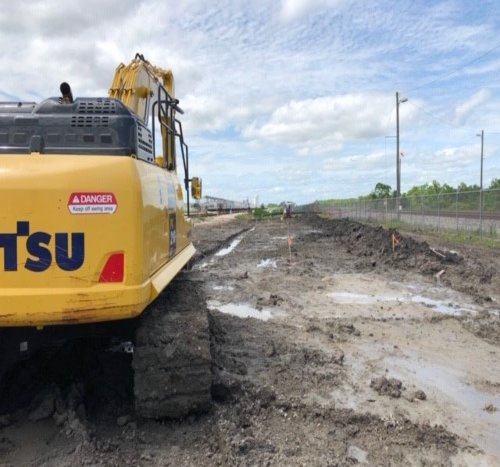 The client needed immediate rail access to another part of their facility due to capacity expansion and congested rail traffic at the existing switch. The project was already behind schedule and had a very short track construction window because railroad construction forces were scheduled to make the tie in. The track section was to be constructed over very soft soils that included a significant cut and then was to be replaced with lime treated structural fill. Tensar received an urgent call late one evening to see if we could assist with their project since they lacked the time required for the lime to cure.